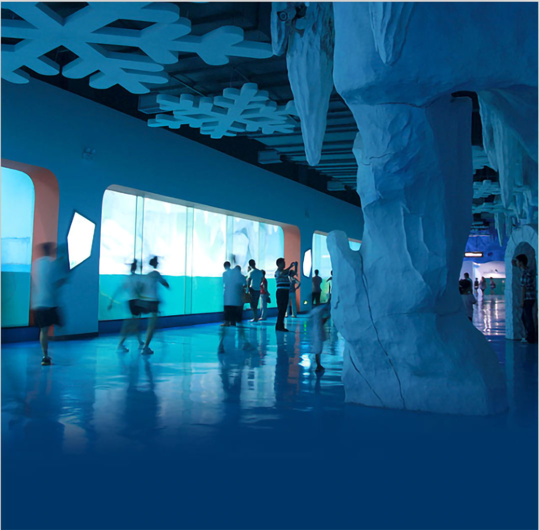 這里是一個(gè)冰雪世界,整個(gè)場館全部用披著皚皚白雪的巖石打造而成,匯集了來自南極和北極的極地動物,各種動物均分別設(shè)池展示