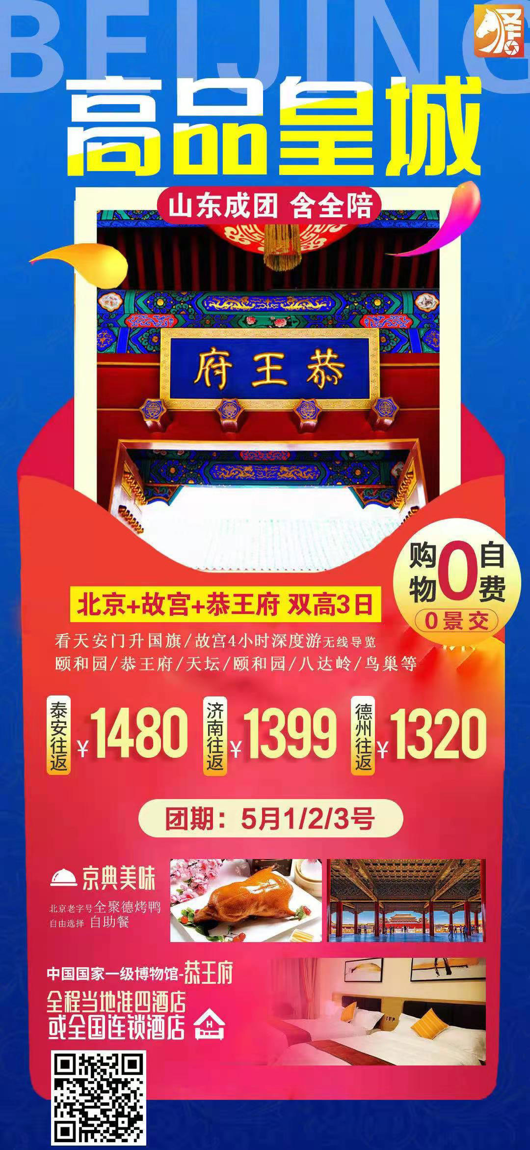 【五一特供】高品皇城—北京一地雙高2晚3日游(0購(gòu)物 0自費(fèi) 0景交)