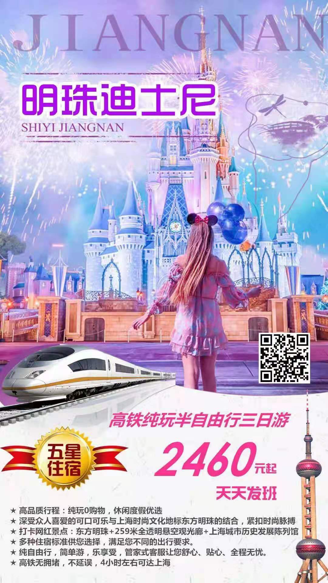 【明珠迪士尼】上海迪士尼樂園、東方明珠歡樂餐廳高鐵純玩半自由行三日游(上海進(jìn)出)