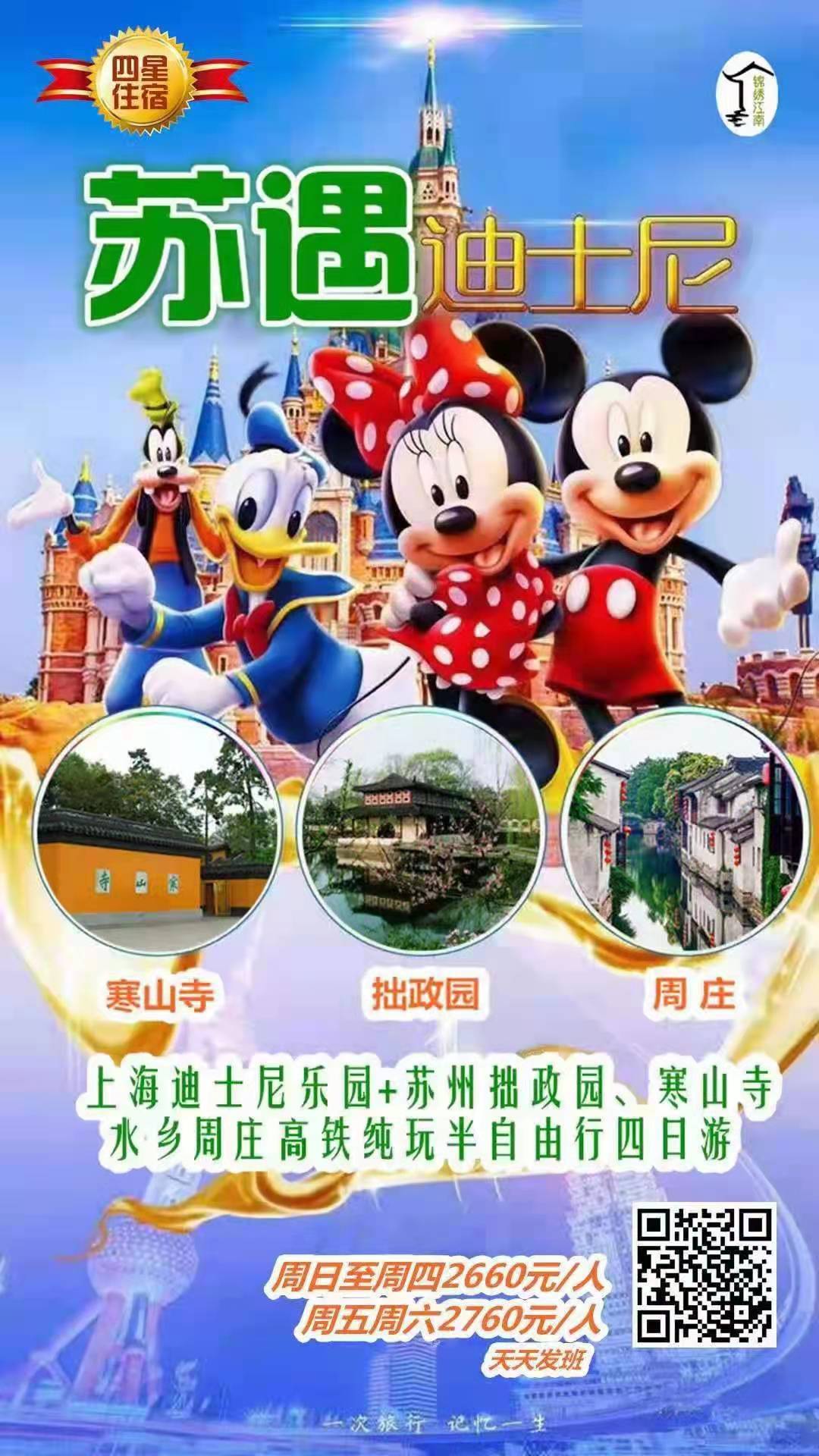 【蘇遇迪士尼】上海迪士尼樂園+蘇州拙政園、寒山寺+水鄉(xiāng)周莊高鐵純玩半自由行四日游(上海進(jìn)出) |