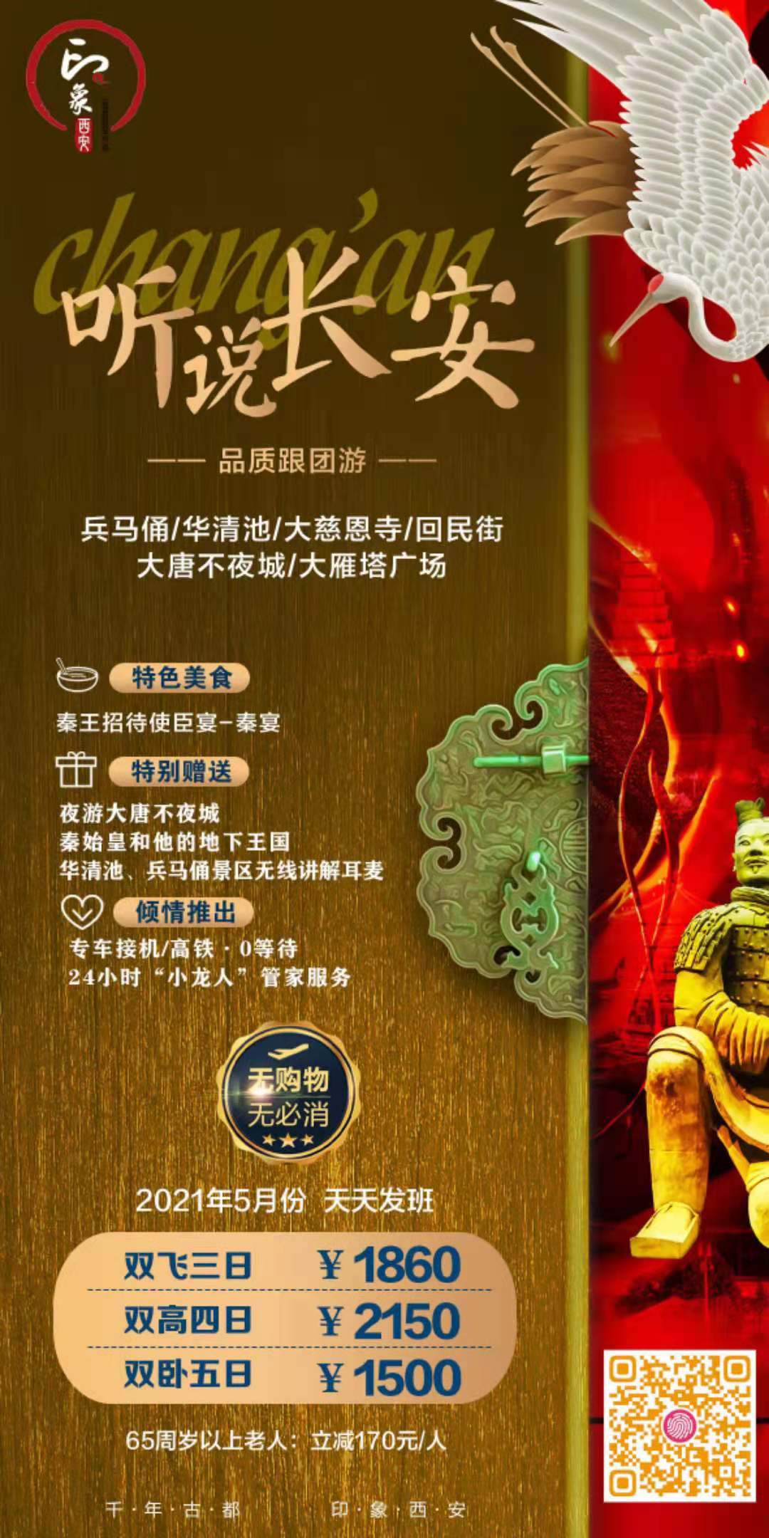 4.當(dāng)天根據(jù)航班時(shí)間送客人至咸陽國際機(jī)場乘晚班機(jī)返回家鄉(xiāng)。