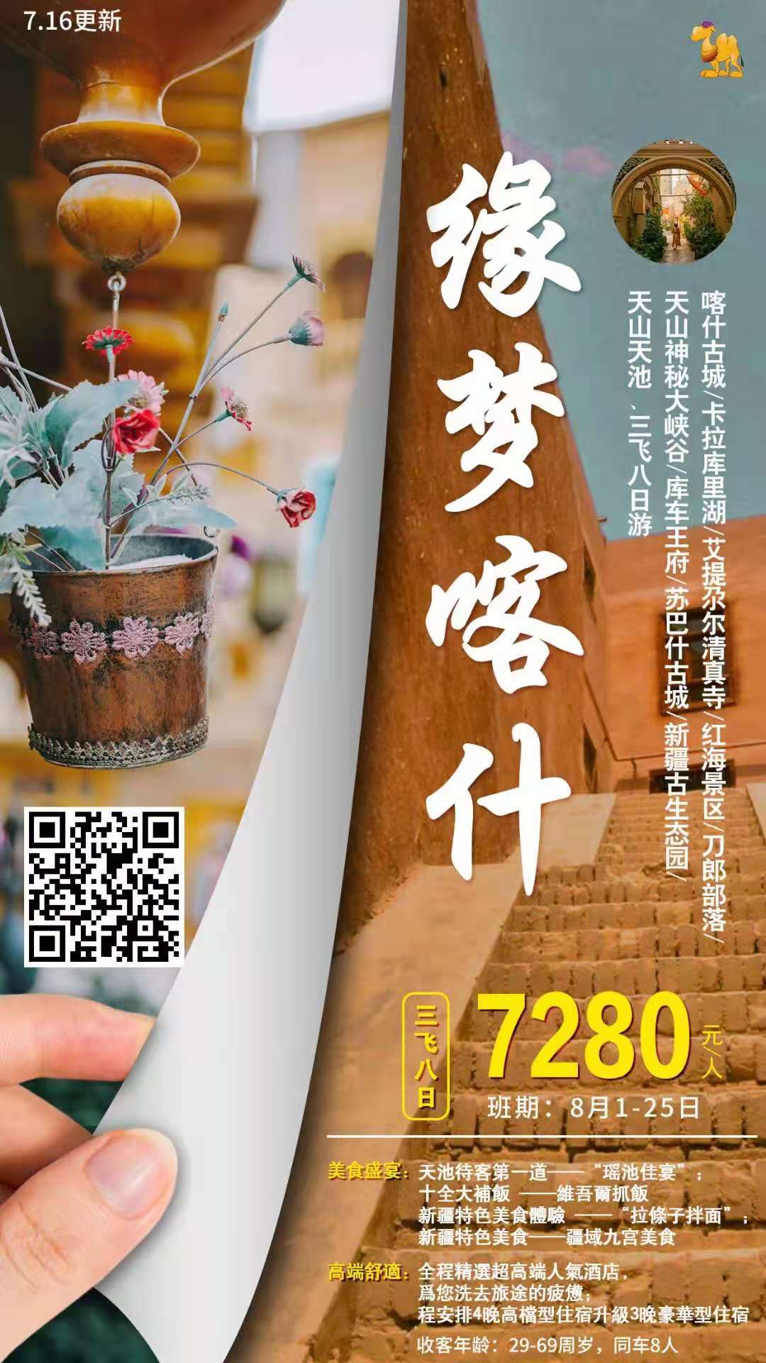 烏市-飛喀什-卡湖(路程190KM,行駛約5H) 根據(jù)航班信息乘坐飛機前往喀什 接機后,乘車前往【喀什古城】觀看開城儀式、自魏晉南北朝至隋代,中國正史上都記載說:疏勒國,有大城十二,小城數(shù)十;其都城方五里。這些記載使我們第一次知道了喀什古城的周長面積,但方位卻未指明。《新唐書·地理志》中說:“疏勒國……王治伽師城。”又引賈耽《四夷道里記》 11:00 乘車前往【卡拉庫里湖】(行駛時間約4小時) 15:00 沿途用午餐(用餐時間約1小時) 16:00 游玩景點:【卡拉庫里湖】(游玩時間約1.5小時)卡拉庫里湖是世界上少有的高原湖泊。湖的四周有冰峰雪嶺環(huán)抱,特別是周圍的公格爾、公格爾九別峰和慕士塔格峰更為這個湖增添了神奇而美麗的色彩。在風平浪靜的日子里,皚皚銀峰、綠色草原和湖邊畜群倒映在湖中,異常優(yōu)美 17:30 乘車返回喀什市(行駛時間約4小時) 21:30 晚餐(用餐時間約1小時) 22:30 入住酒店 溫馨提示:今天路程長,溫差大請注意增減衣物;午餐為盒飯,條件有限,請?zhí)崆白龊眯睦頊蕚?/span>;卡拉庫里湖海拔較高,如有感冒等疾病,建議謹遵醫(yī)囑前往。 |