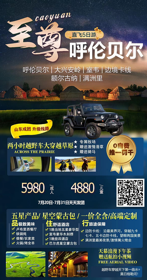 【呼倫貝爾直飛5日】